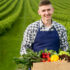 - Young gardener man wearing jumpsuit hat working gloves holding gardening equipments surprised